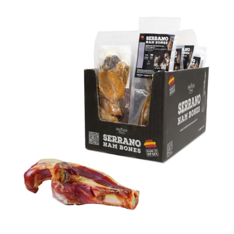 A Serrano sonka fehérjében gazdag, és számos fontos tápanyagot tartalmaz a kutya egészsége szempontjából, beleértve a szőrzet és a bőr állapotának javítását. Ideális az íny erősítésére, rágás közben tisztítja a fogakat, ezáltal csökkenti a fogkőképződést.